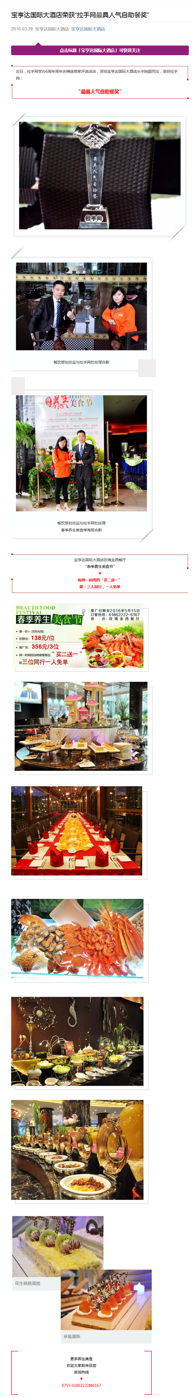 宝亨达国际大酒店荣获“拉手网最具人气自助餐奖”